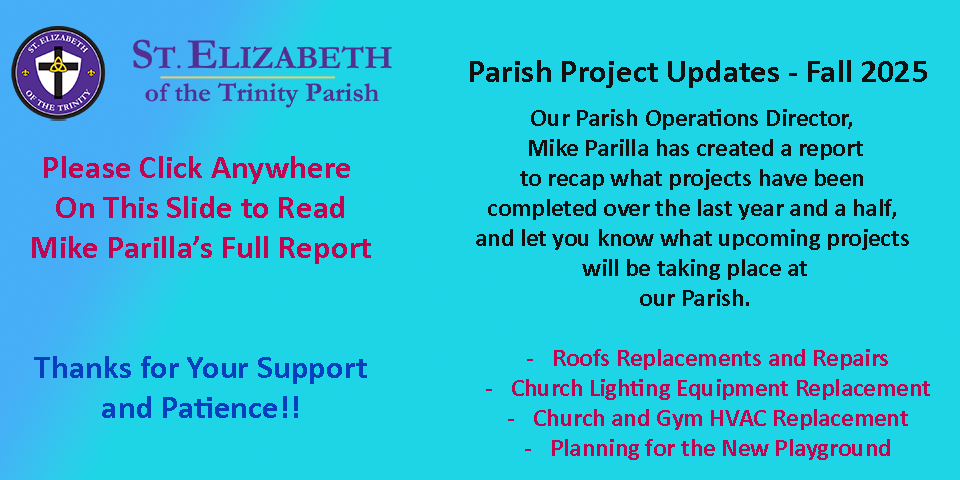 Adoration of the Blessed Sacrament takes place every Thursday beginning after the 8:30 a.m. Mass until the time of Benediction at 6:50 p.m., in Spanish.